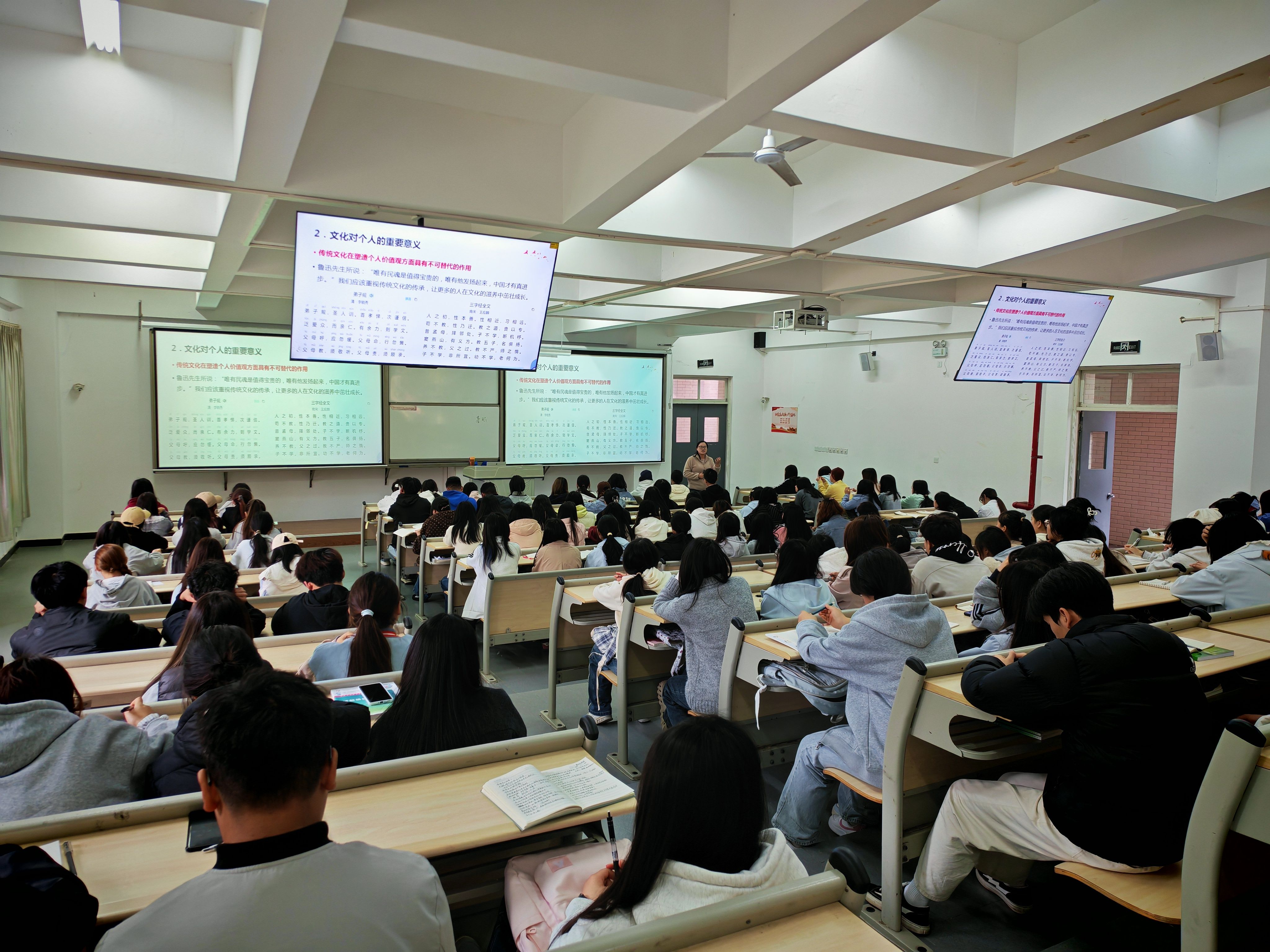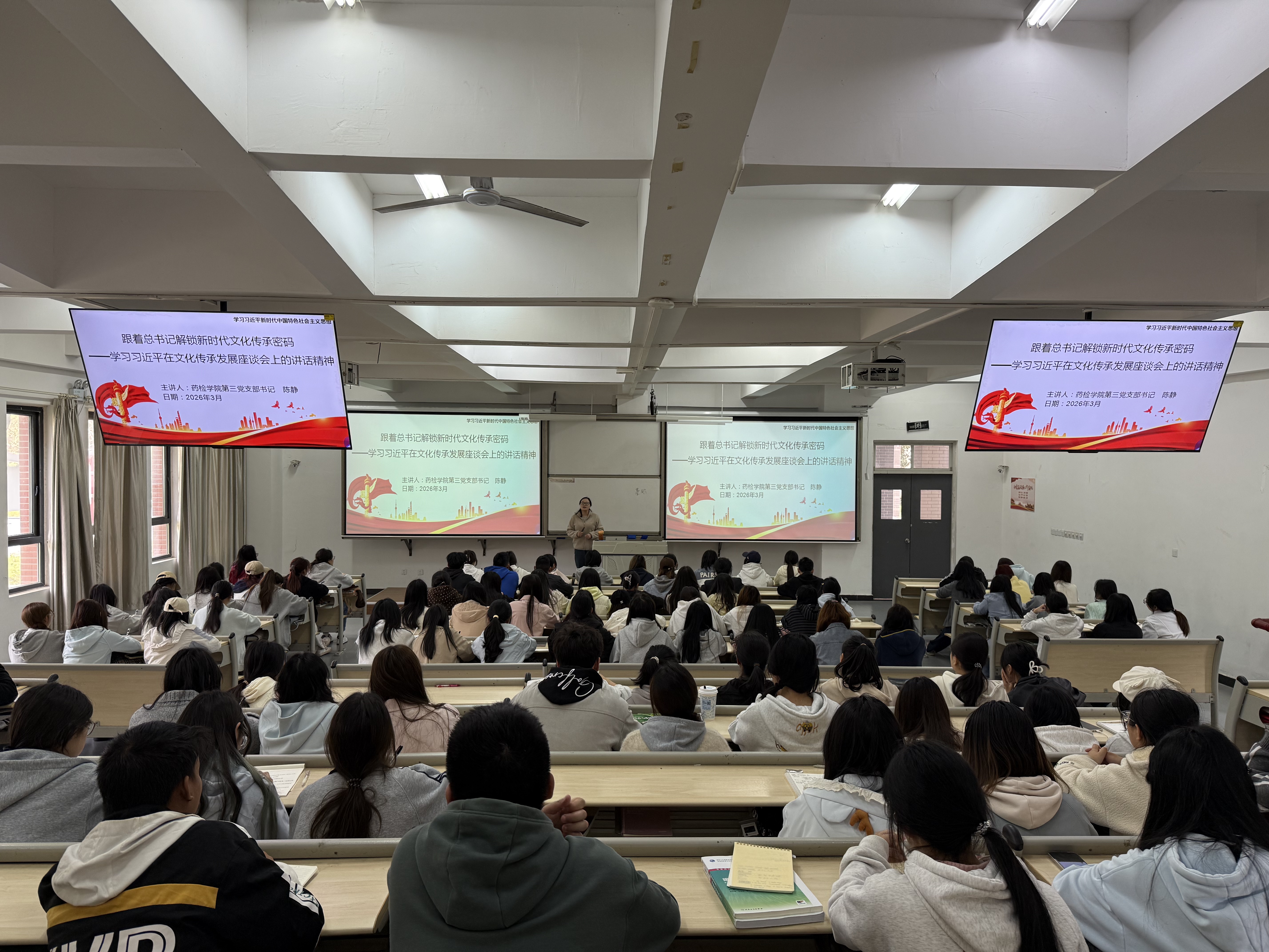 课程中,陈静老师紧扣习近平总书记在文化传承发展座谈会上的重要讲话精神,从“深刻把握中华文明的突出特性”“深刻理解‘两个结合’的重大意义”“更好担负起新的文化使命”三个方面展开系统讲解。她结合中华文明所具有的连续性、创新性、统一性、包容性、和平性等突出特性,深入阐释了马克思主义同中国具体实际、同中华优秀传统文化相结合的内在逻辑,帮助员工代表进一步深化对文化自信时代内涵与实践要求的理解。课堂上,同学们认真聆听、积极互动,结合自身专业特点与文化传承的实际展开热烈讨论,学习氛围浓厚。
