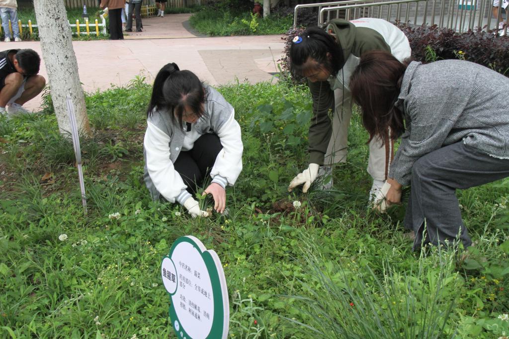 入园后,刘德军老师对全体同学进行了安全教育,带领同学们参观了药用植物园,了解了园内概况、园内药植等,并明确了劳动内容和要求。随后,同学们便进行分组劳动,对药用植物园各责任区域内的环境卫生、杂草、枯枝枯叶等进行了全面清理清洁。在劳动过程中,公司领导与老师们严谨务实的劳动作风感染着同学们,老师们一边劳作,一边向大家讲解和科普关于药材的知识;同学们通过自己辨认药材,去除杂草,平日里那些晦涩难懂得知识仿佛有了生命力,“嗖”的一下进入了脑袋,同学们深感“纸上得来终觉浅,绝知此事要躬行”,求知的喜悦让大家忘记了劳动的辛苦,干劲十足的在草地里忙碌着,虽然时有细雨,同学们却无心躲避,享受着劳动的快乐同时,也深刻地感受到劳动创造美、劳动最光荣的意义和价值。