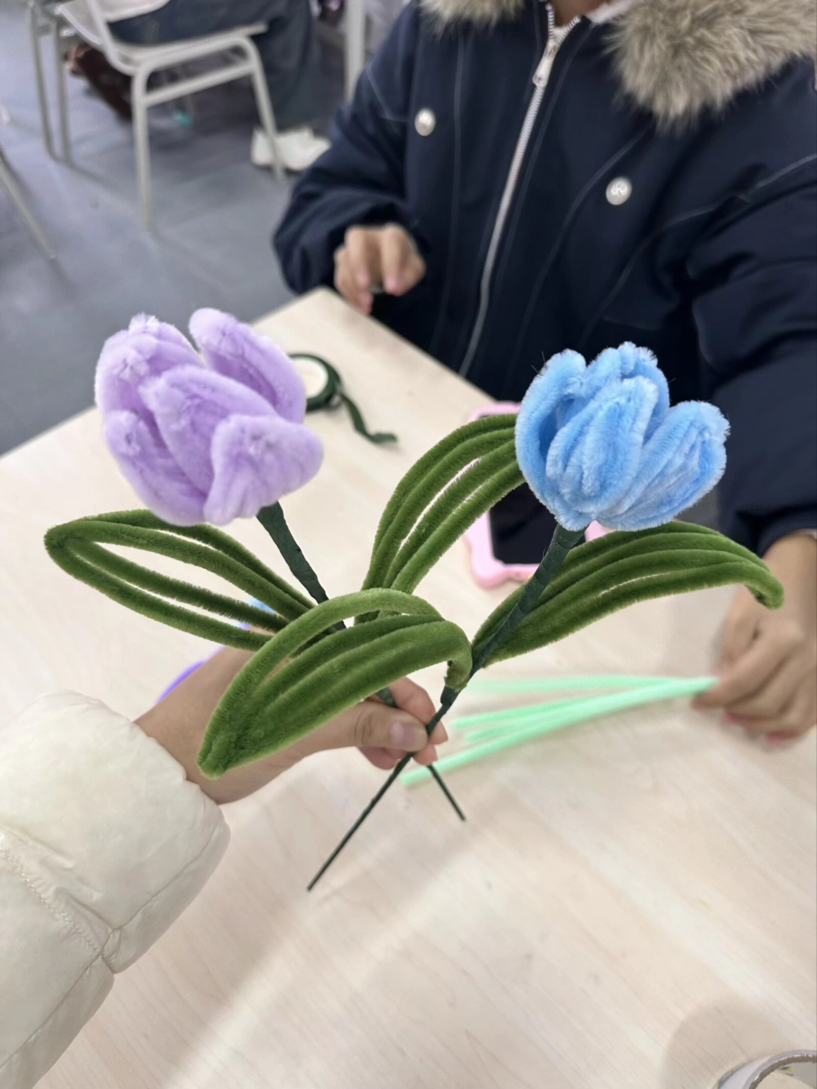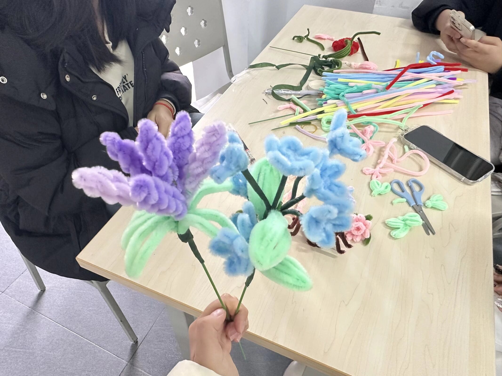本次“扭棒生花”活动不仅让同学们在紧张学习之余放松了身心,体验了手工艺造的乐趣,更在潜移默化中增强了团队凝聚力与专业认同感,成功地为校园文化生活增添了一抹亮丽的创意色彩。