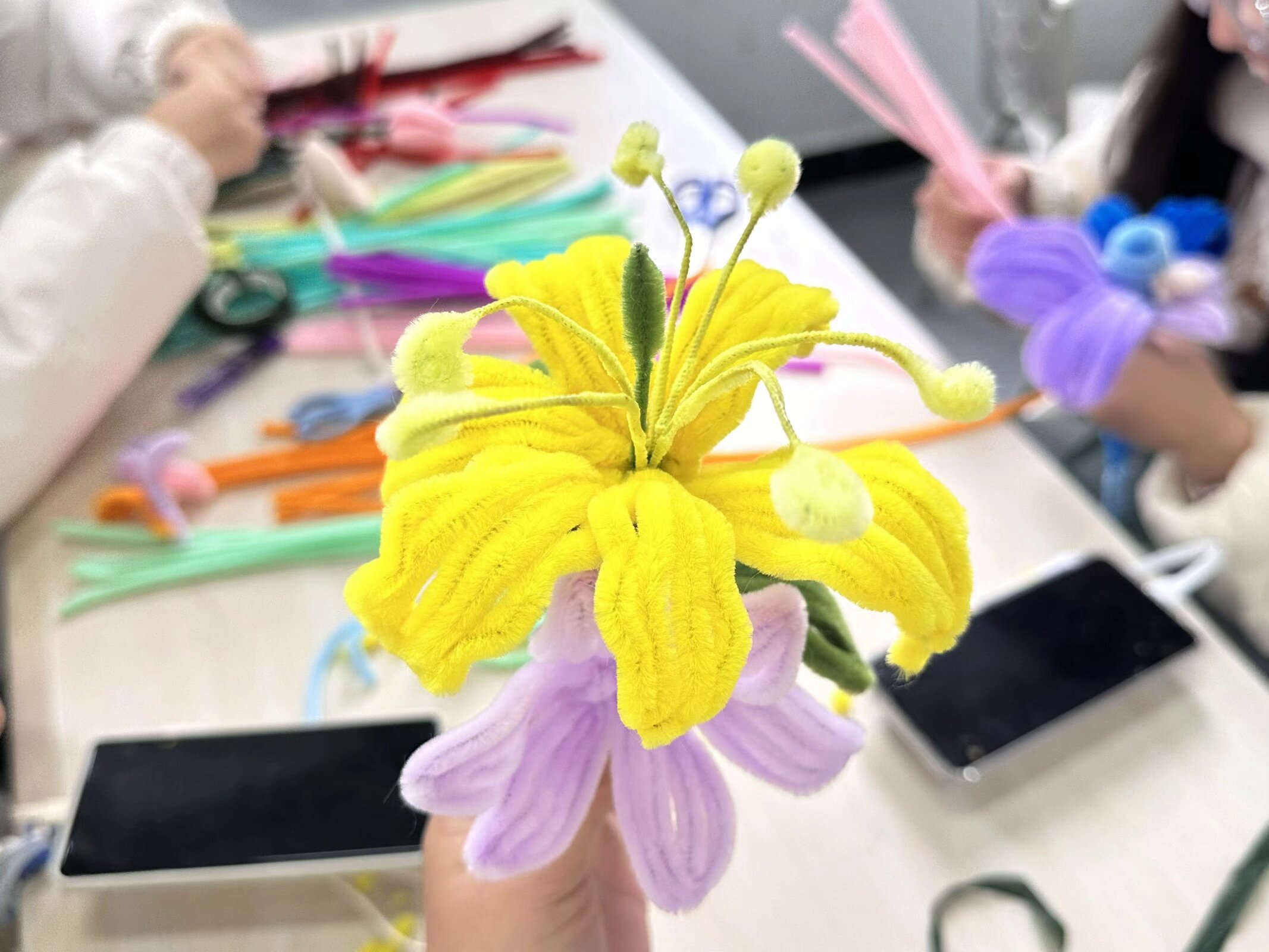 活动在欢声笑语中步入尾声,同学们纷纷展示了自己的得意之作——或是一束精致的花卉,或是一枚可爱的挂件。大家纷纷表示:“没想到扭棒手工这么有趣,和同学们一起动手成就感满满!”“把课本里的植物变成手里的艺术品,感觉和专业更亲近了。”