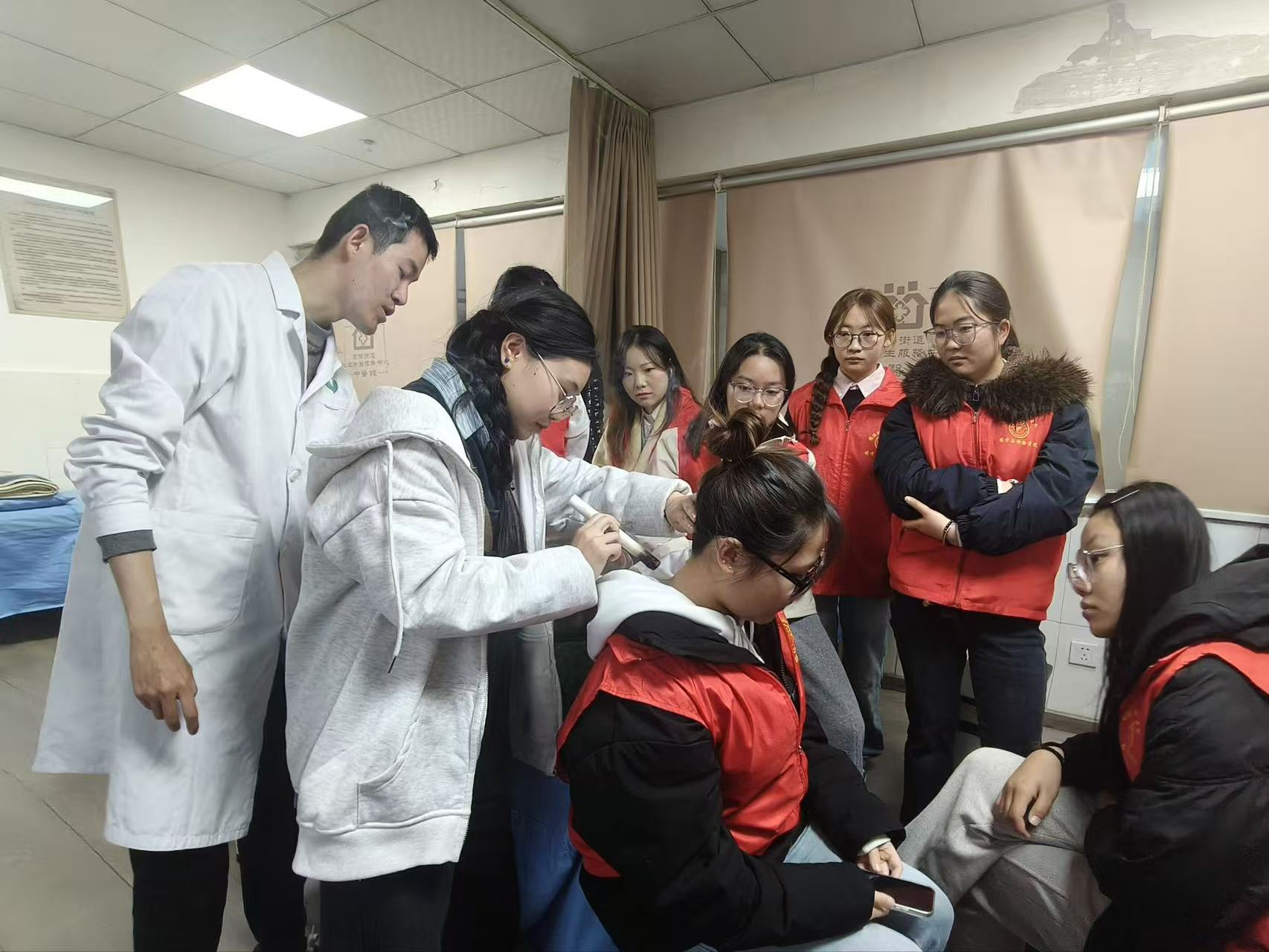 活动伊始,社区卫生服务中心的专业医师为志愿者们系统讲解了中医基础理论。从阴阳五行、脏腑学说到经络循行等核心概念,医师深入浅出地阐释了拔罐、针灸、艾灸、推拿按摩等传统疗法的原理、功效及适用范围。通过讲解,志愿者们对中医“治未病”的先进理念和预防思想有了更为深刻的理解,为后续的实践体验打下了坚实的理论基础。
