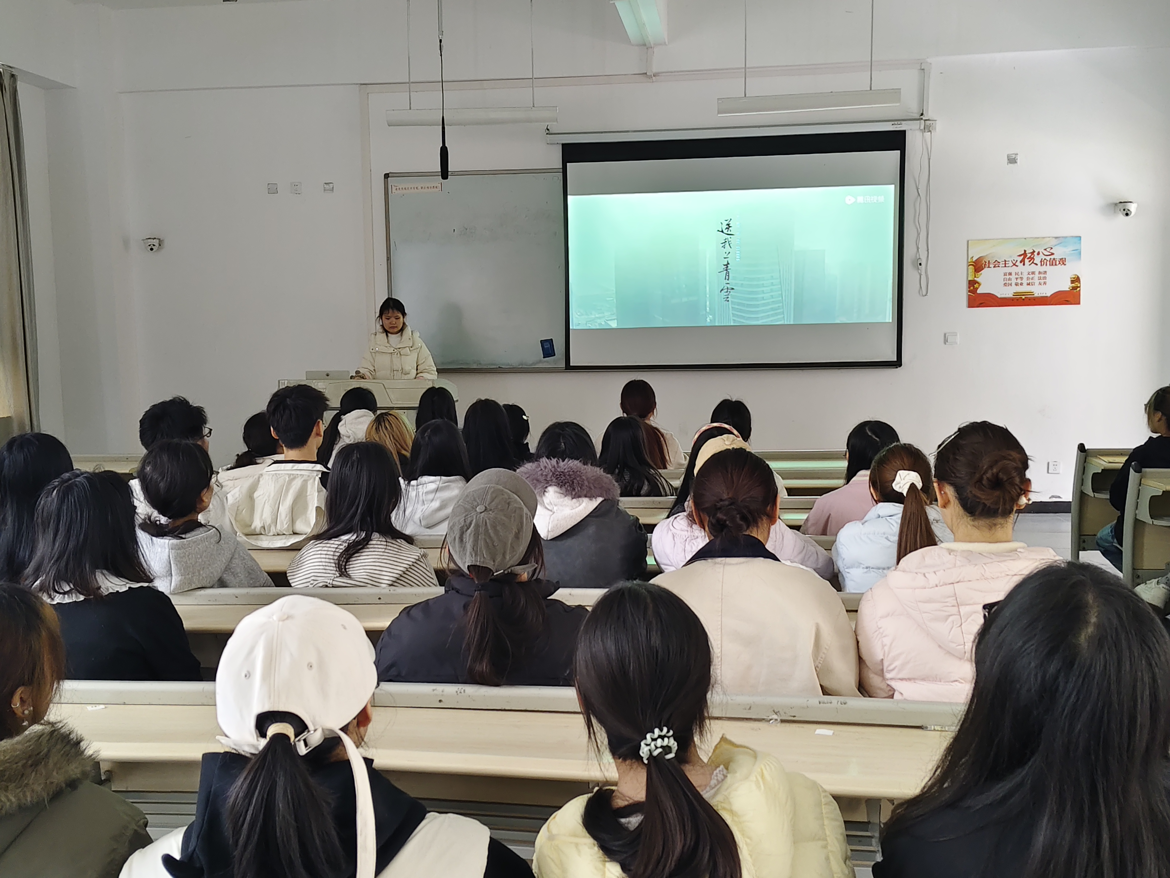 全体同学共同观看了由姚晨主演的现实主义题材影片《送我上青云》。影片深刻聚焦当代女性视角,通过女主角盛男在遭遇生活变故与理想碰撞后的心路历程,生动刻画了其在现实压力、尊严维护与自我价值追寻中的挣扎与成长,传递出不畏艰难、向阳而生的强大生命力量。观影过程中,现场秩序井然,同学们全神贯注,深深沉浸在跌宕起伏的剧情里,为主角的坚韧与勇气所触动,对影片所探讨的生命意义与现实议题产生了深刻共鸣。