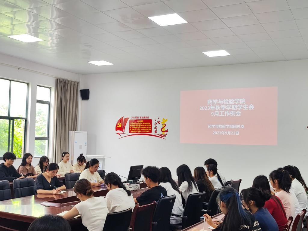 为充分发挥员工会的桥梁纽带作用,增强员工会部门间的交流,2023年9月22日,利来国际团总支在经开区校区会议室205召开员工会九月工作例会。会议由利来国际团总支部书记鲜敏主持,药检副书记唐慧敏及员工会主席团成员、各部门员工干部共25人参加。