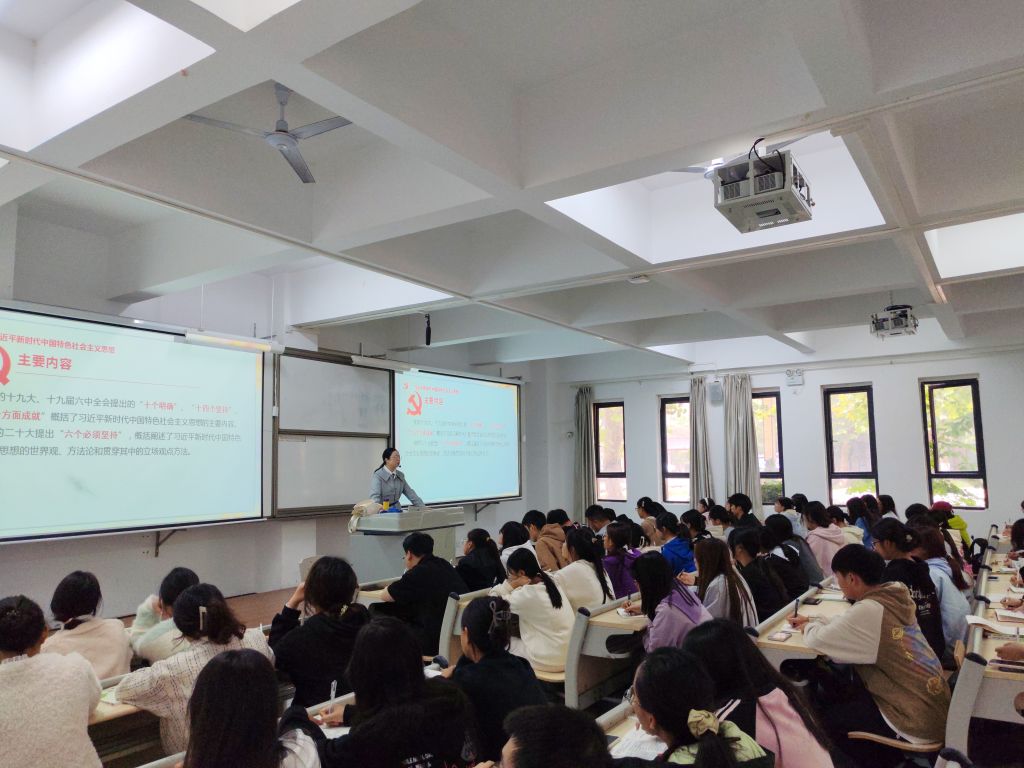 首先,芦珂老师为同学们介绍了习近平新时代中国特色社会主义的四个重要思想概论,其中强调了“六个必须坚持”。芦珂老师围绕党的二十大报告中的新观点、新论断、新思想及人民群众普遍关心期待的内容,用视频与举例的方式帮助大家解读二十大精神,更好的了解报告中所提出的“六个必须坚持”的内涵要义,增进同学们对党的创新理论的政治认同、思想认同和理论认同。