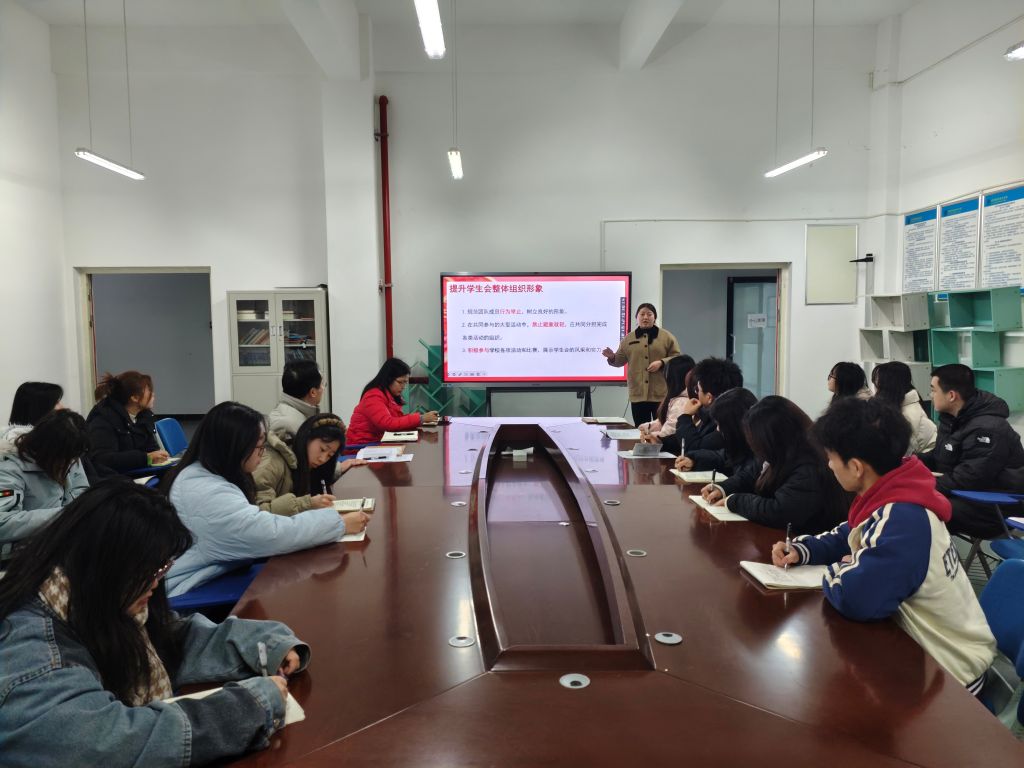 会议伊始,团总支书记鲜敏总结了上学期员工会在各项活动中的表现,并指出员工会在本学期需要开展的重点工作,并多开展丰富多彩的校园活动。党总支书记杨泽刚肯定了员工会干部在服务同学、校园文化建设中的积极贡献,并对新学期工作提出要求。他强调应加强自身建设,组织动员广大同学积极参与各类社会实践活动等,充分发挥示范引领作用。最后,团总支副书记曾晓梅总结和并指出员工会在上学期的不足和未来的改进措施,须不断优化管理体系和工作安排,补己所短。