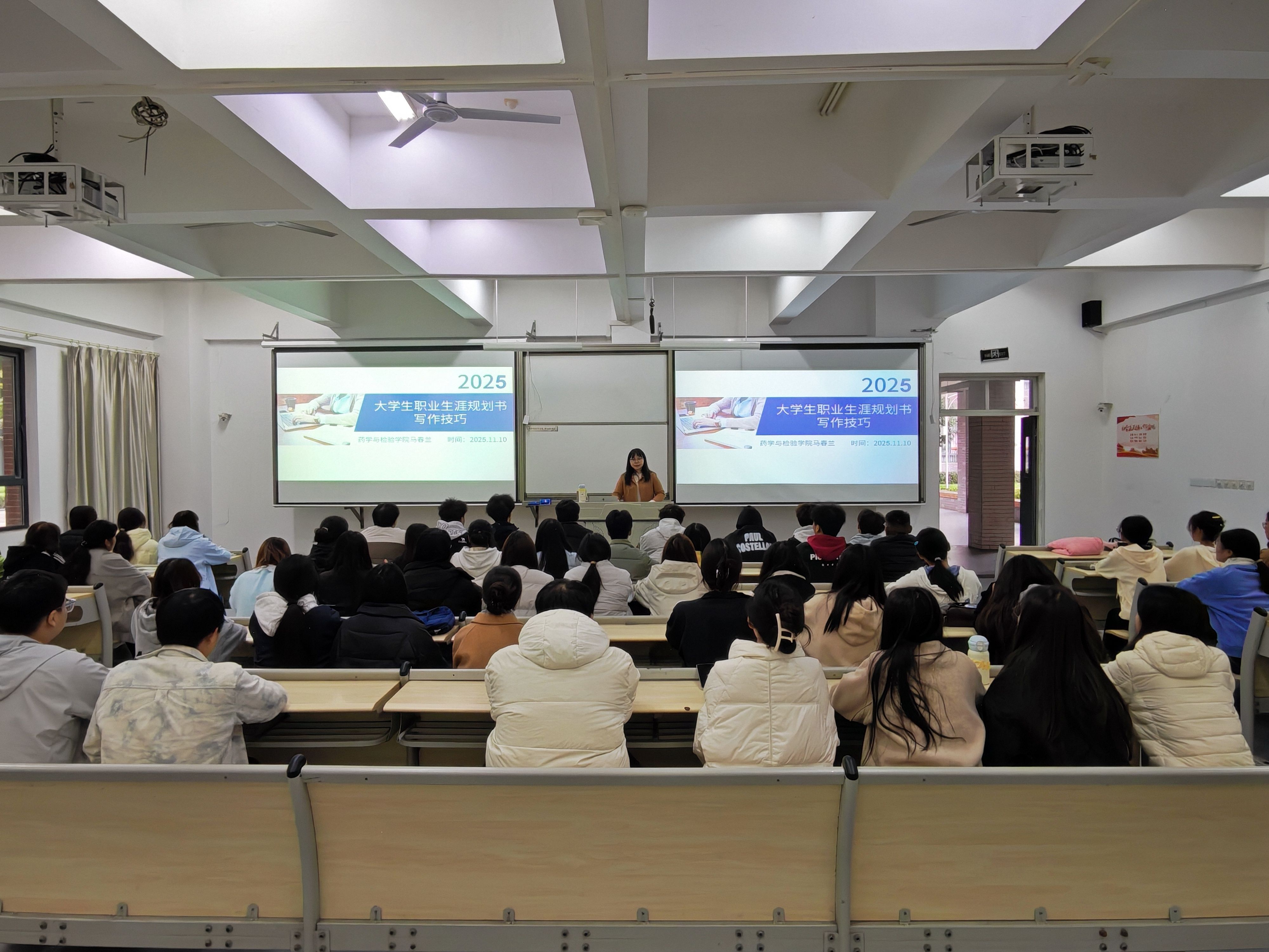 为帮助同学们点亮职业发展道路,掌握规划未来的主动权,2025年11月10日,利来国际联合“药检职引未来”特色工作室,在经开校区1104教室成功举办了“老员工职业生涯规划书写作技巧”素质拓展讲座。本次活动吸引了67名同学积极参与。