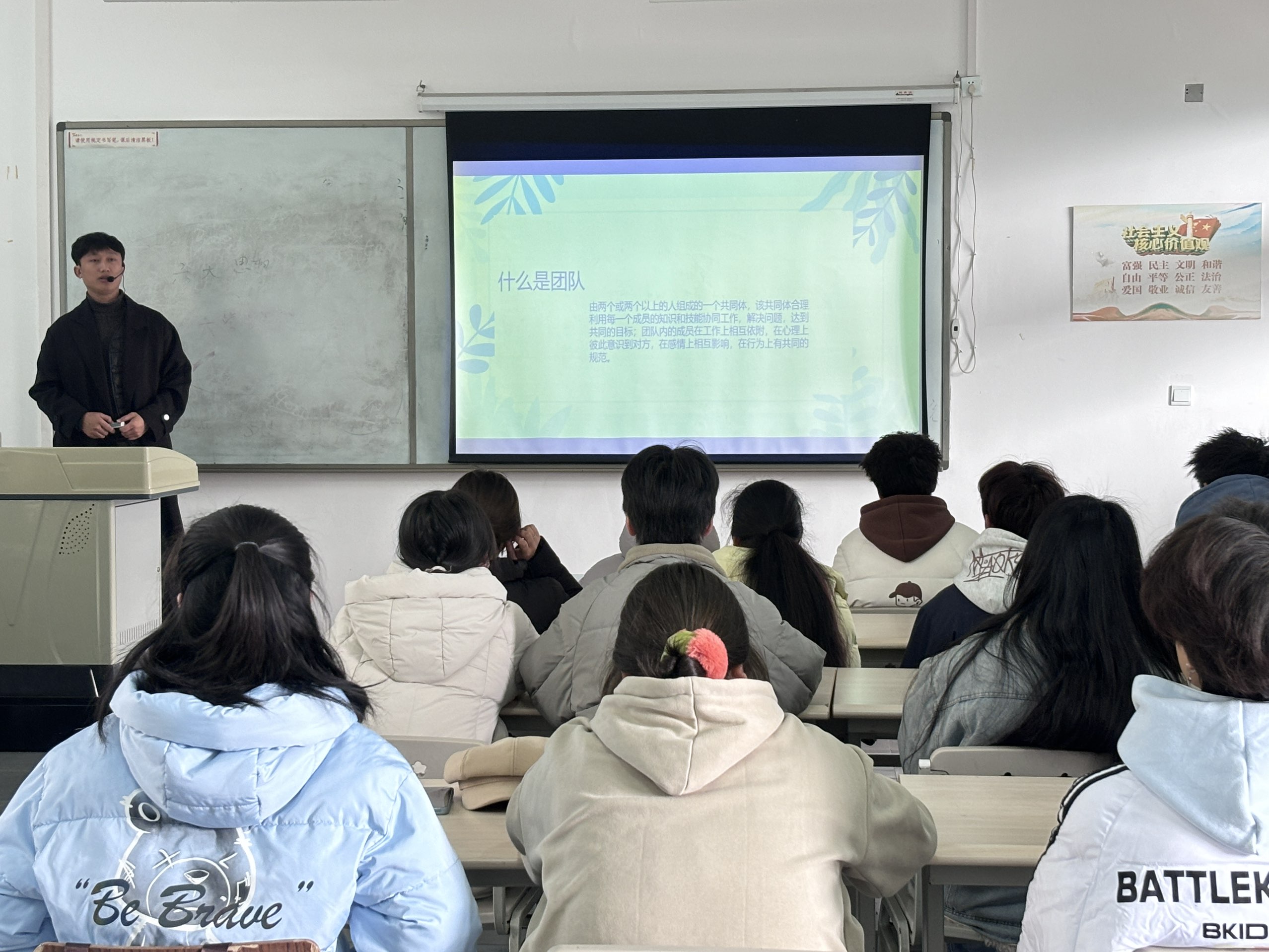 讲座中,主讲教师石佳冬围绕团队建设与协作主题,结合老员工活、专业实践和未来职场中的常见场景,系统阐释了团队的核心内涵与关键特征,指出团队是以共同目标为导向、成员优势互补、责任分工清晰的有机整体。同时,深入剖析了团队协作中有效沟通、相互包容、目标共识、角色互补等重要环节,帮助同学们理清团队与一般群体的本质差异,深刻认识到高效团队对个人成长与集体成就的双重意义。