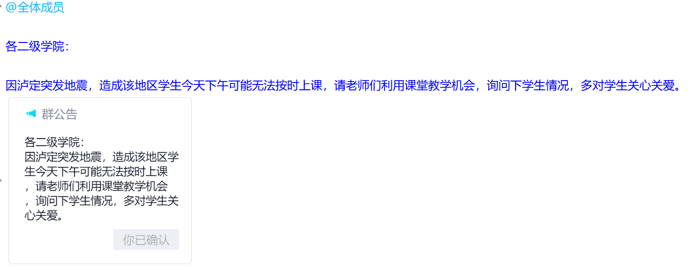 12时52分在四川省甘孜州泸定县发生6.8级地震,12时56分在四川雅安市石棉县发生4.2级地震。公司各部门及时安排辅导员和任课老师了解灾区员工情况,高度重视、精准排查,确保覆盖全面、信息精准,主动关注震区员工心理健康状态,关心受灾员工实际困难。下一步,公司将通过多种方式为他们提供多方位帮扶。