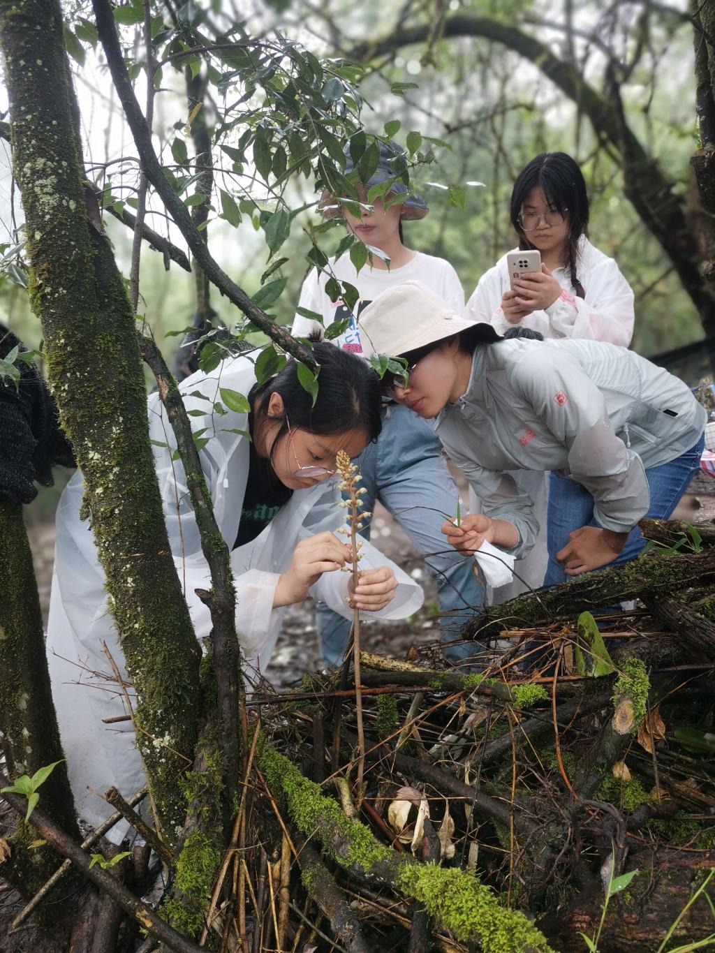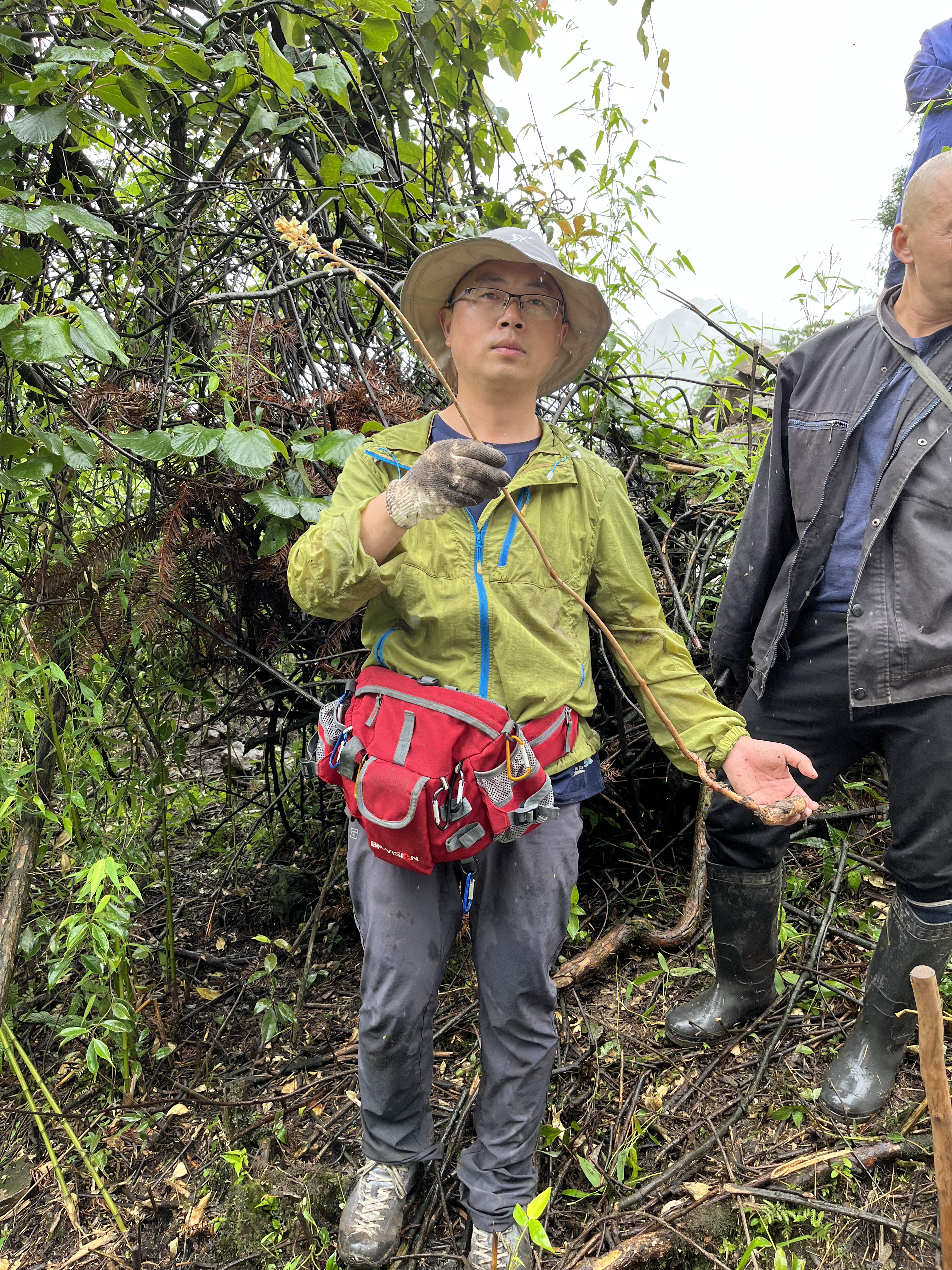 在天全县太阳坪种植农民专业合作社工作人员的陪同下,刘德军带领团队师生冒雨在海拔1600米左右的森林中穿行,发现多处野生天麻资源,并对野生天麻的生长环境、海拔、伴生植物、土壤情况等进行了详细记录,同时对天麻、土壤、蜜环菌进行采样,带回实验室开展进一步的研究工作。