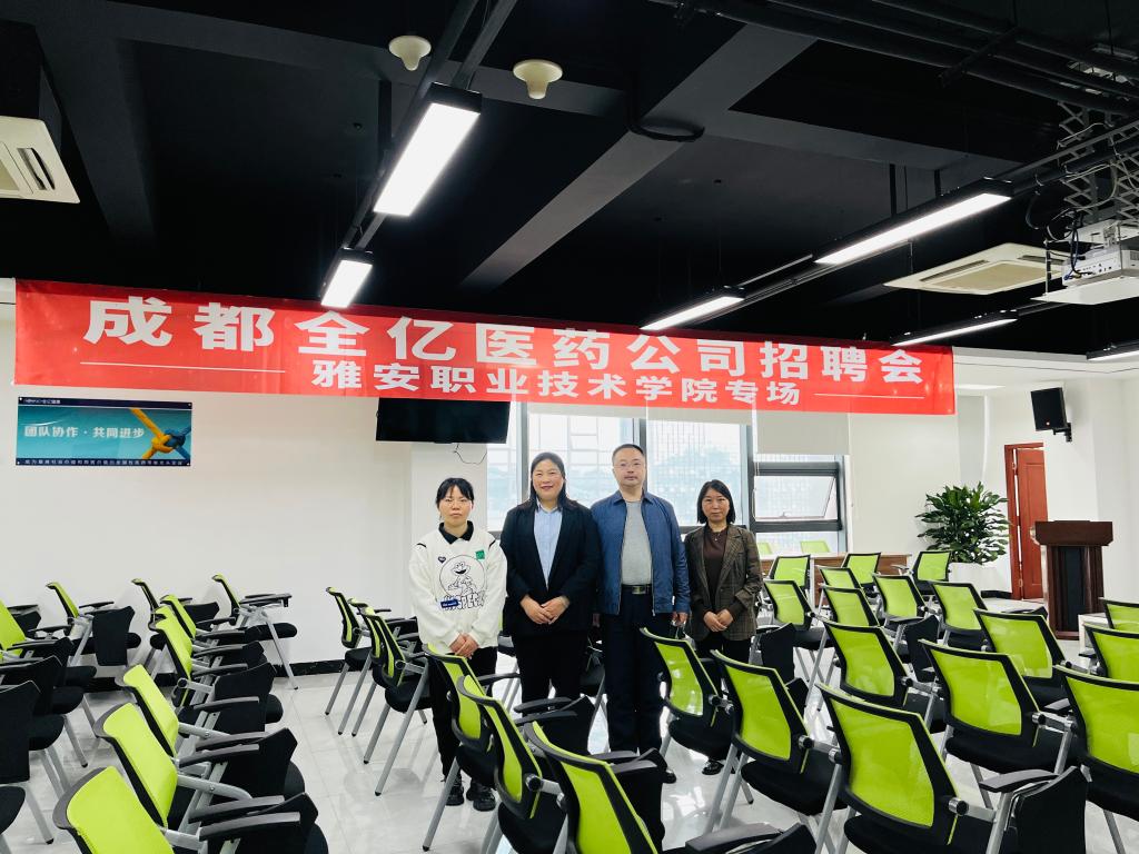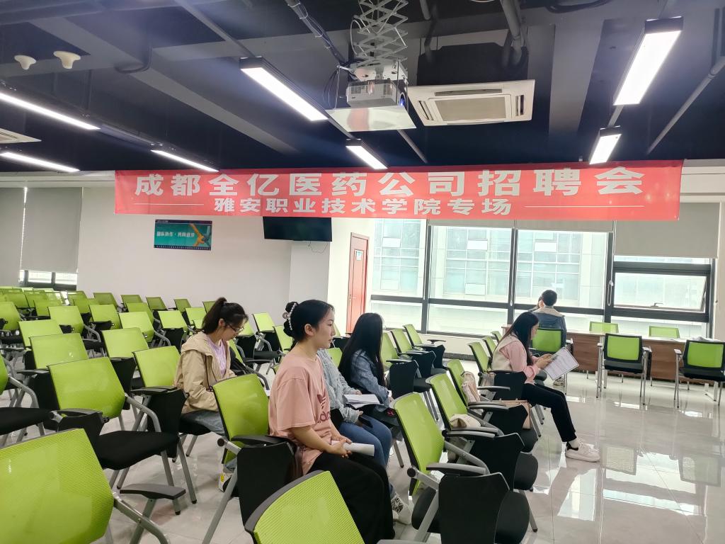 为开展好本次专场招聘会,成都全亿医药有限公司人事部负责人任春兰在11日晚面对本校应届毕业生召开了公司招聘线上宣传会,将公司的基本情况、就业环境、就业岗位等进行了介绍。招聘会当天,药学与检验公司党总支书记王伟才和两名药学、中药学专业辅导员现场组织。