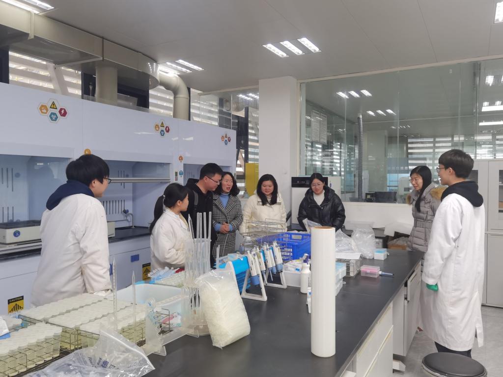 2月16日,食品与营养学教研室主任刘翔一行4位老师,前往四川育良检测有限公司实地调研员工实习工作。