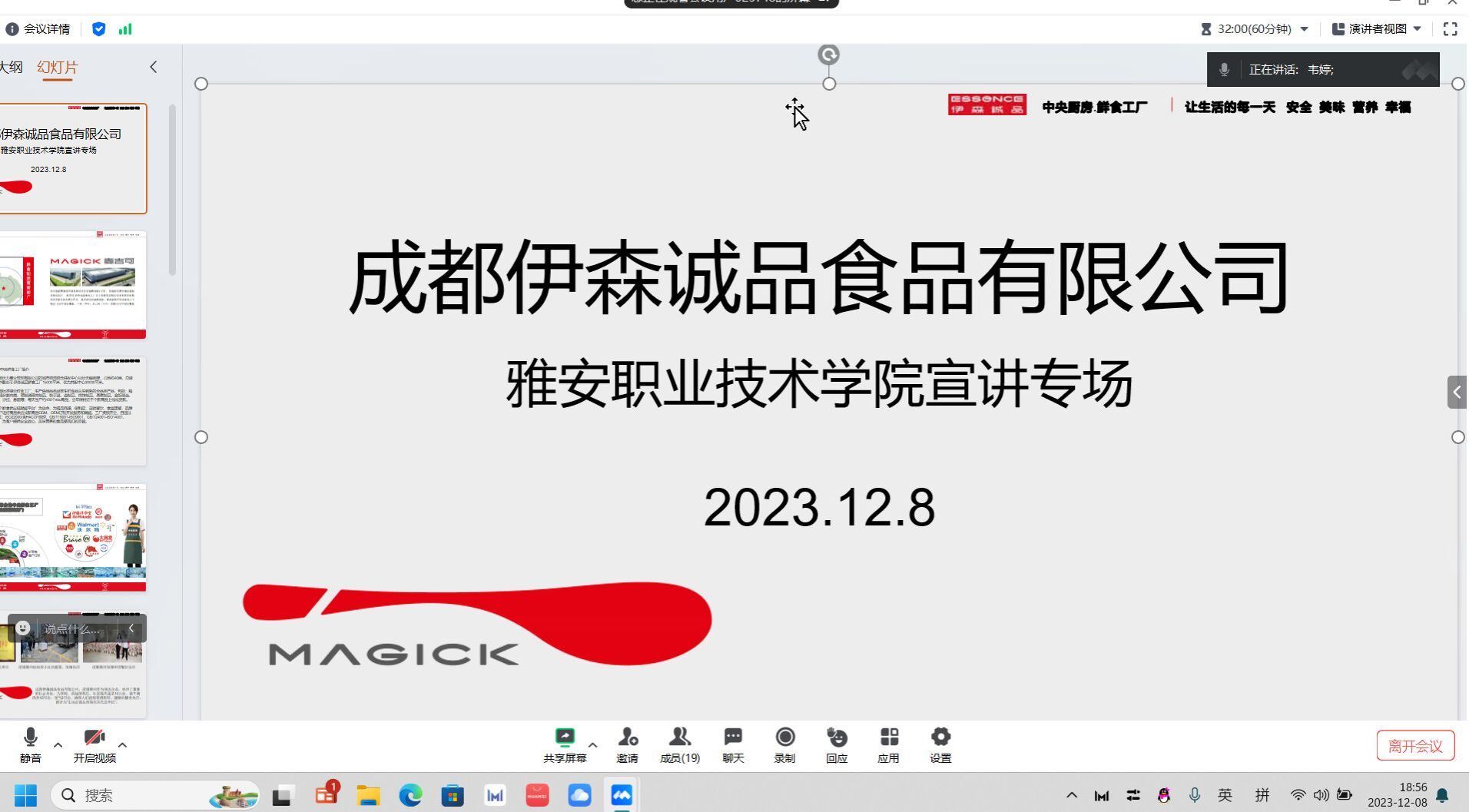 2023年12月8日,利来国际为成都伊森成品食品有限公司组织了线上专场招聘宣讲会。成都伊森诚品食品有限公司,成立于2020年,位于四川省成都市龙泉驿区,是一家以从事为各大超商等供应生鲜熟食的企业。宣讲会上,招聘负责人陈经理介绍了公司的主营业务、招聘岗位、薪酬待遇以及职业发展路径,并就同学们关心的各项问题,并进行了现场的答疑,会议有近40名同学参加。最后有26人加入了面试群,进行后续面试。本次线上招聘宣讲会为推动公司2024届毕业生就业起到积极推动作用。