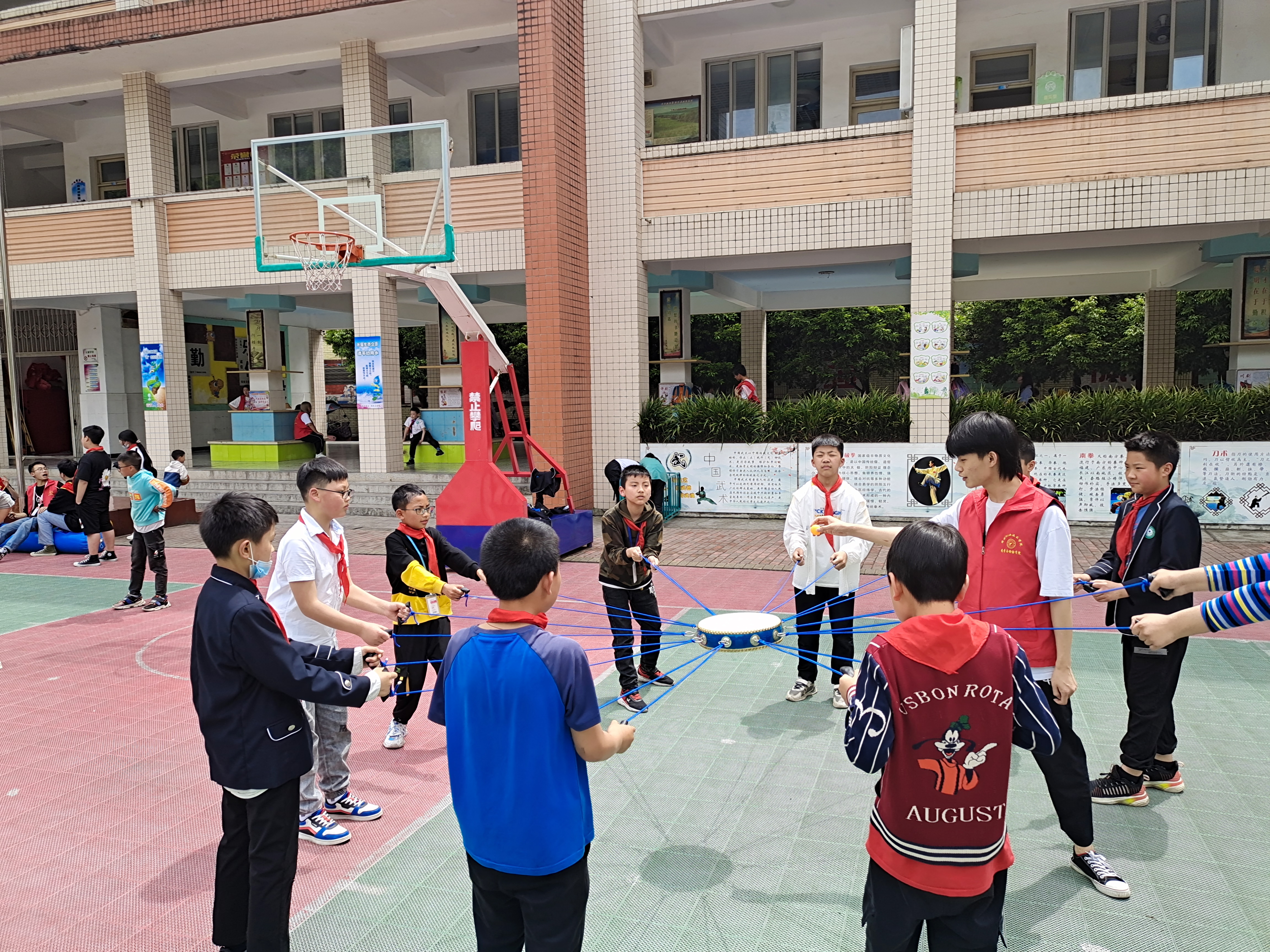 志愿者带上充足的活动物资布置好活动会场,在老师的引领下和六一班的同学们认识,做好了54名小朋友的游戏分组安排。在小朋友的欢呼与期待中,活动正式拉开了帷幕。首先是热身舞蹈传承,志愿者带领小朋友们一起学习《你笑起来真好看》的课间舞蹈,同学们虽然有些害羞但都认真学着。接着是“趣味游戏时间”,小朋友们按照分好的小组进行“齐心协力同心鼓”和“疯狂毛毛虫的比赛”,志愿者们做好记分、安全保障等后勤工作,不论头顶的太阳有多烈,每个志愿者都恪尽职守。游戏放松时间结束后,志愿者们也分组和小朋友们谈心闲聊,了解他们近期的困扰、压力,对小朋友进行宽慰、指导,帮助他们减轻心理负担,用真诚的心帮大家加油鼓劲。