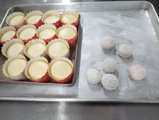 此次活动的主要内容为制作药膳月饼和蛋糕。活动开始前,由工作人员对食品检验楼二楼202及101车间进行了活动场地布置,提前做好了开展活动的准备工作。活动开始,由张露文老师向同学们介绍了本次活动的意义。随后,由工作人员对具体流程和面对突发情况的应急方案进行了讲解。在划分好小组后,同学们便开始了药膳月饼的制作,有些小组采用白莲为馅,制作出清热降火的月饼,而有些小组则选用紫薯和奶黄,制作出即养生又美味的月饼,同学们充分发挥了自己的创意才能,制作出别具风味的药膳月饼。药膳月饼制作好后,同学们大胆展示自己的成果,给“月饼们”赋予了不同的名称和特别的意义。最后,由工作人员评选出三组最佳创意月饼,颁发了中秋纪念小礼品。药膳月饼活动结束后,大一新生由于军训时间冲突,则没有参与蛋糕制作活动,虽然稍有遗憾,但是相信新生们已经感受到浓浓的团圆气息。蛋糕制作活动,主要由大二的同学参与,在工作人员的帮助下同学们成功地制作出美味的蛋糕。