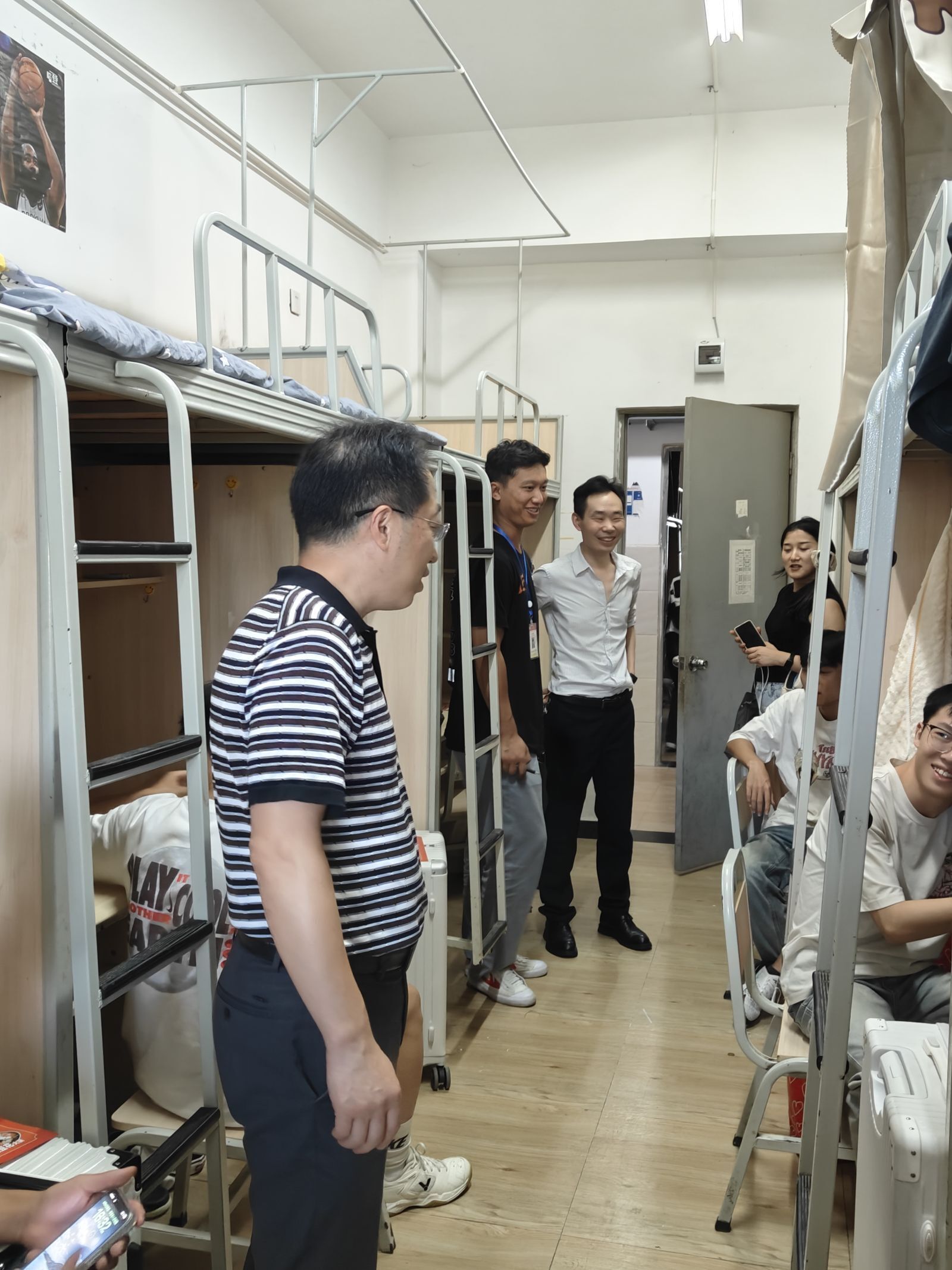下午,经理、书记、辅导员老师一行走访宿舍,察看员工入住情况,对新生进行慰问,询问他们的入校感受,祝愿新生顺利适应老员工活。