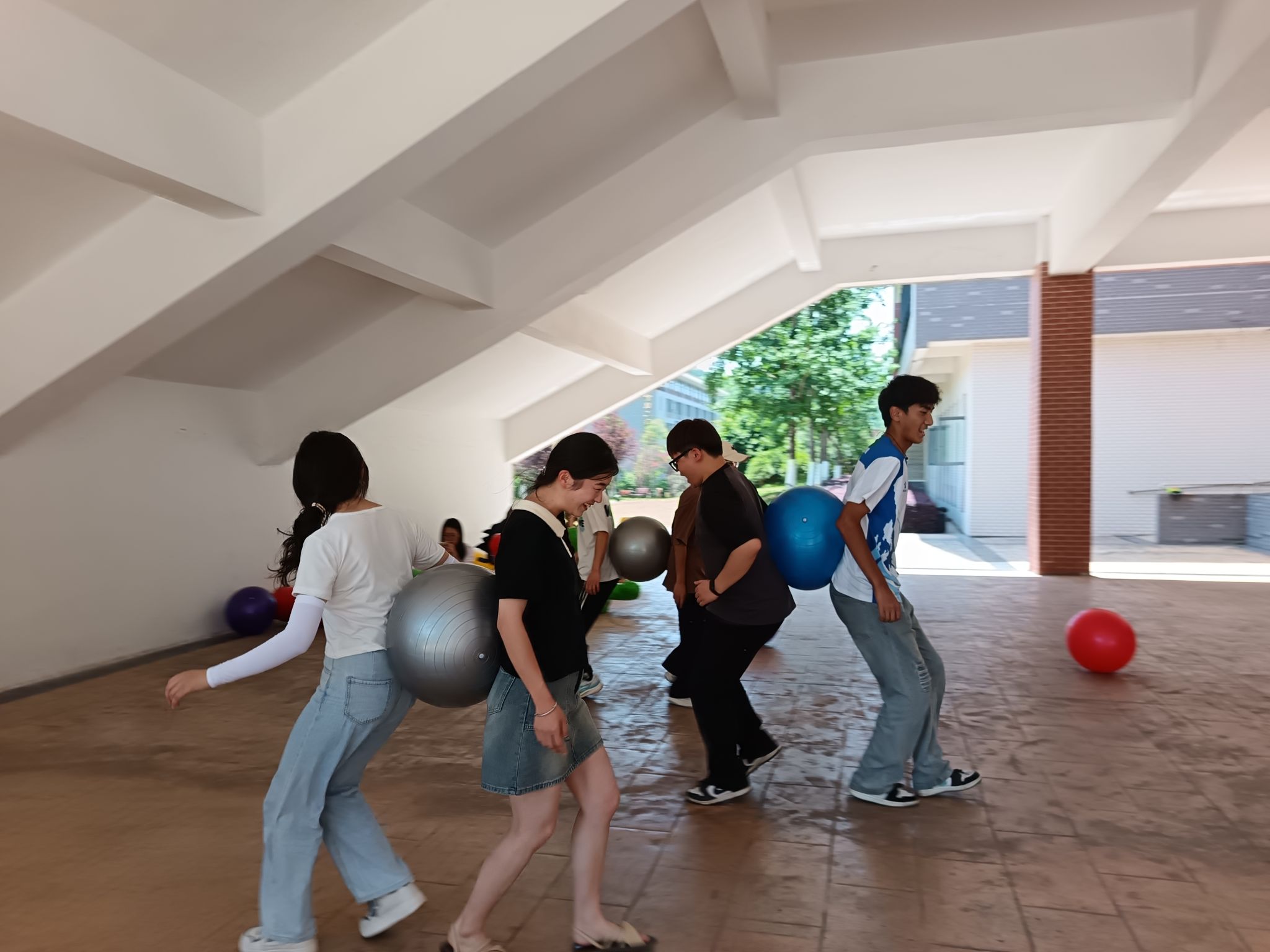 活动当天,工作人员早早到场,精心准备各类活动道具,确保游园会顺利进行。活动现场设置了“端午同心鼓”“福气传运球”“旱地龙舟”、“端午套福气”等多个趣味游戏环节。活动现场气氛热烈,欢声笑语不断。同学们积极参与各类游戏,表现了极高的热情。