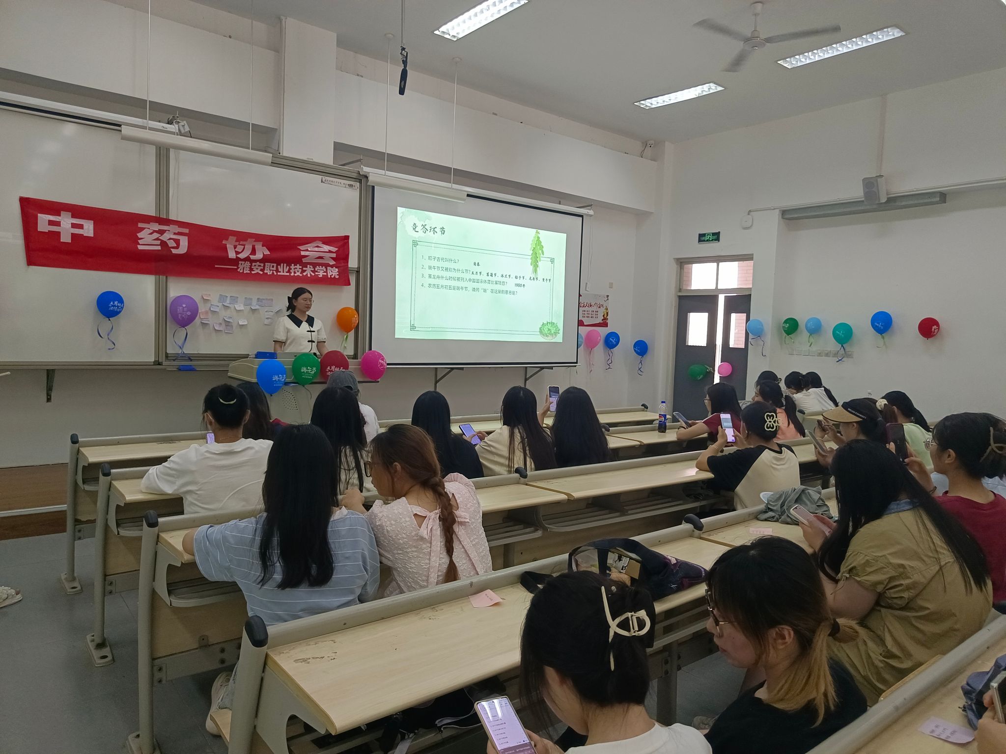 活动中,由贺晶同学主讲,让同学们写下对端午节的祝福,进行端午知识竞赛抢答,一起“粽”香包,健康保平安,最后制作水晶粽子,体验传统习俗,迎接端午。