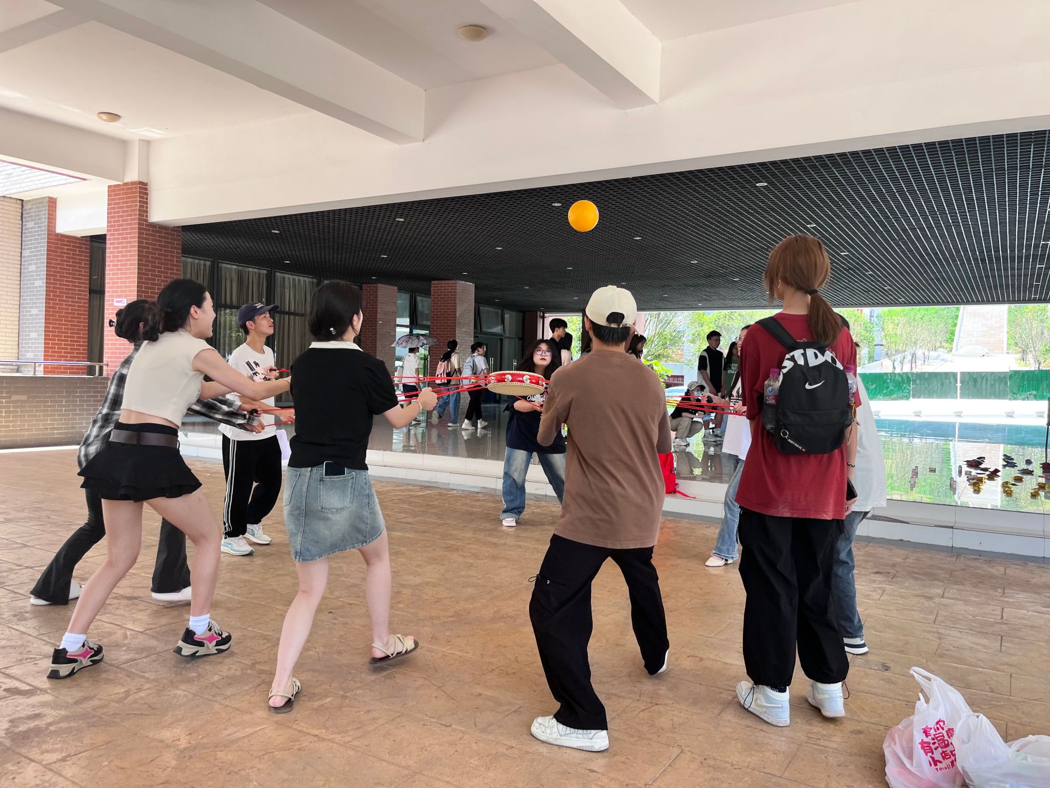 活动当天,工作人员早早到场,精心准备各类活动道具,确保游园会顺利进行。活动现场设置了“端午同心鼓”“福气传运球”“旱地龙舟”、“端午套福气”等多个趣味游戏环节。活动现场气氛热烈,欢声笑语不断。同学们积极参与各类游戏,表现了极高的热情。
