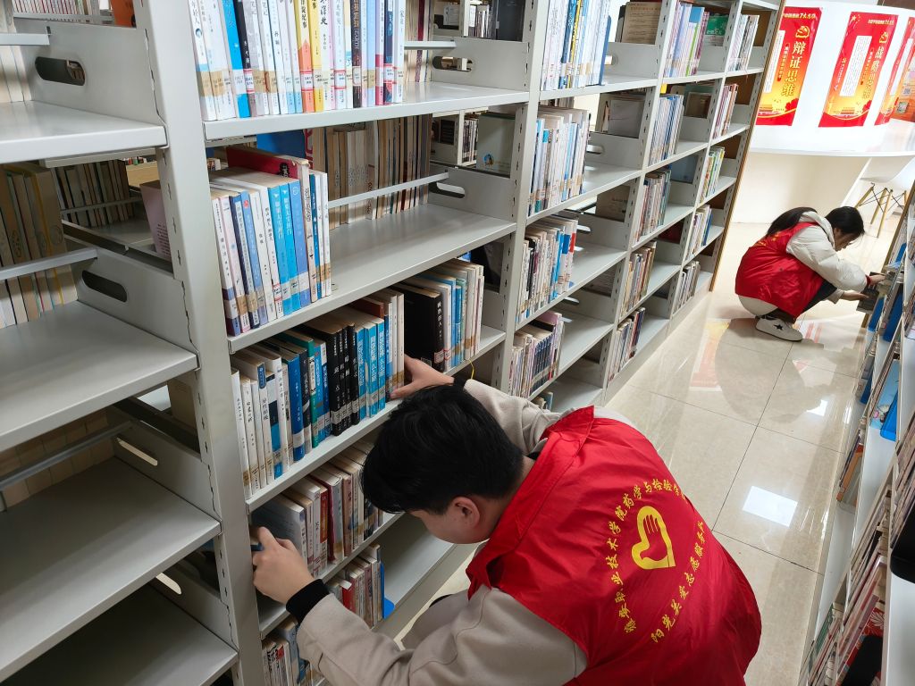 活动当天,志愿者们分为书架清洁组与分类整理组,高效有序地投入工作。负责清扫书架的志愿者,动作一丝不苟,他们拿着清洁工具,认真细致地拂去书架上的灰尘,确保每一层书架都干净透亮,让其重现原本的整洁模样分类整理组认真核对类别、修补装订破损图书。整个过程中,大家分工明确、密切配合,遇到问题及时沟通协商,老师也提供专业指导与监督,团队凝聚力十足。大家齐心协力,图书馆的面貌焕然一新。整齐排列的书架、井然有序的书籍,营造出更加舒适、便捷的阅读环境。