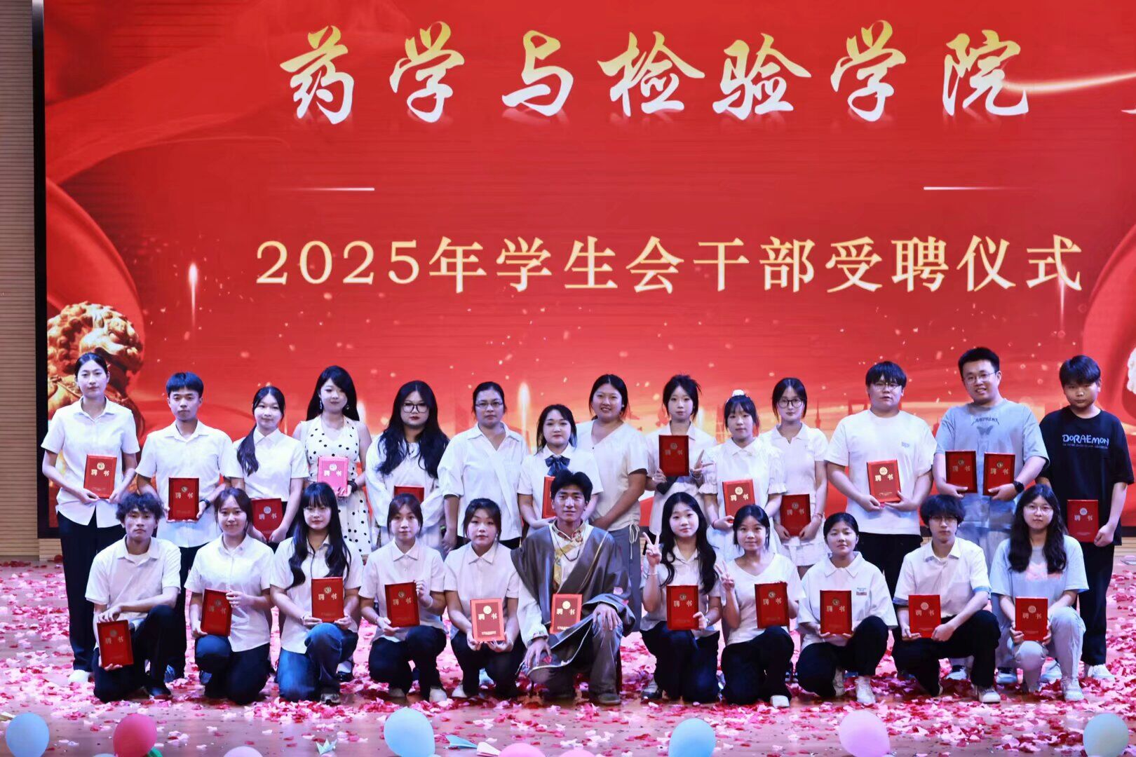 晚会以“忆梦伊始”“炽热韶华”“岁月留声”“逐光远航”四大篇章为主线,通过舞蹈表演、歌曲串烧、小品《“职”面未来,笑对挑战》等丰富多彩的节目,生动复刻了药检学子的成长轨迹。公司党总支书记杨泽刚在致辞中深情寄语毕业生:“愿你们前程似锦,母校永远是你们的家”。员工会干部冯丽代表全体毕业生表达了对师长的感恩之情。在温情互动环节中,同学们踊跃参与,现场笑声与欢呼交织,同窗情谊愈显深厚。晚会特别设置了2025届员工会干部受聘仪式,为新一届员工骨干颁发聘书,既为公司员工工作注入新活力,也展现了责任与使命的传承。整场晚会不仅是视听盛宴,更是情感熔炉,歌曲传递青春情愫,舞蹈绽放活力姿态,小品演绎校园故事,每一个环节都凝聚着公司对毕业生的殷切期许。